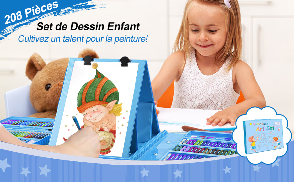 ✨تحتوي على 208 قطعة فنية مُتنوعة تُلبي جميع احتياجاته الإبداعية. سيجد كل ما يحتاجه لرسم مُختلف التصاميم والتعبير عن موهبته بحرية.